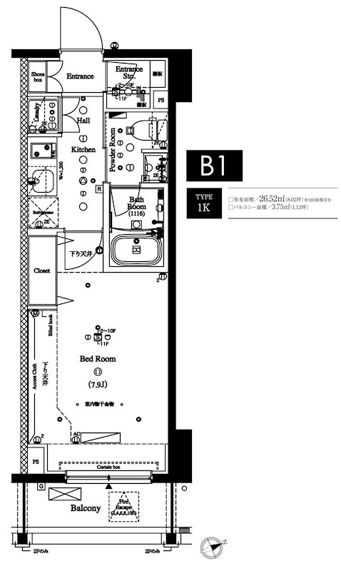 4階 /1K /26.52㎡ /南東