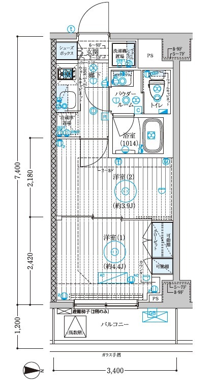 2階 /1K /25.33㎡ /東