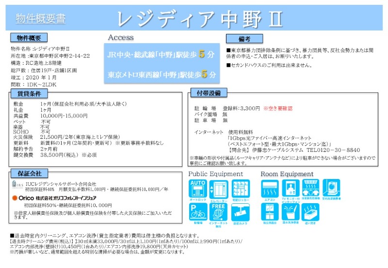 特徴レジディア中野Ⅱ