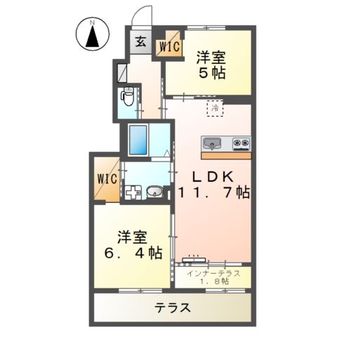 105号室 /2LDK /56.54㎡ /南