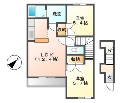201号室 /2LDK /54.55㎡ /南東