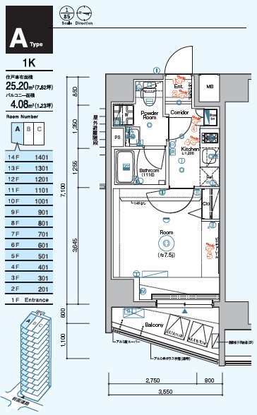 601号室 /1K /25.2㎡ /西