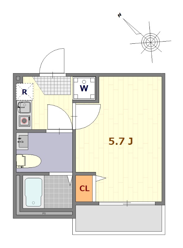 2階 /1K /18.07㎡ /南西