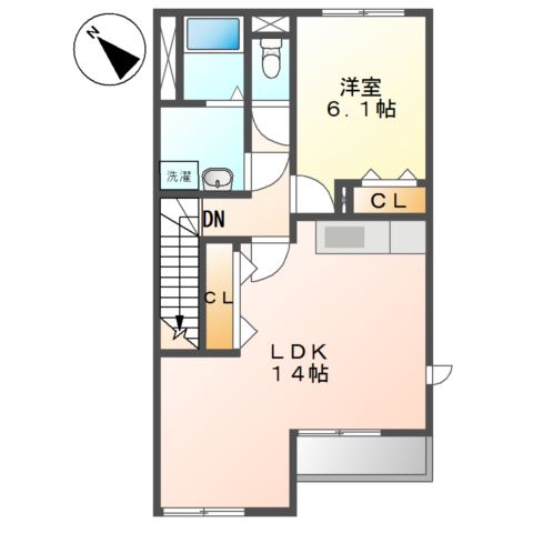 最上階・角部屋。14帖のLDKはダイニングとリビングが分けやすい間取りです。