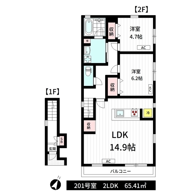 テラスハウス スリーエスは立川市幸町にある築1年(2024年10月築)の2階建木造テラスハウス。 最寄り駅の多摩都市モノレール「泉体育館」駅徒歩14分。 現在エアドアに賃貸募集中の部屋が1件掲載されています。 気になった方はお気軽にお問合わせください。 お部屋は2LDK、広さは65.41㎡。2人暮らし、ファミリーにお勧めの間取りです。リビングの他に2部屋あり、部屋ごとに多様な使い方が可能です。 基本設備のバストイレ別・洗面所独立・エアコン・コンロ2口以上完備で安心。 キッチンはシステムキッチン・ガスコンロ・コンロ2口以上あり。満足いくキッチン環境が整っています。 忙しい方に人気の宅配ボックス・追焚付き・浴室乾燥機設備もあり、快適な生活をサポートします。 人気条件の角部屋・最上階・築浅・南向きのお部屋です。 こちらのお部屋の入居時期は、2026年5月中旬可能となっております。